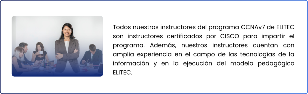 La academia Cisco ELITEC ofrece el programa en tres módulos, abarcando temas como protocolos de redes, diseño de redes, configuración de equipos, implementación de redes inalámbricas y seguridad de red. Al completar los tres módulos, los estudiantes pueden rendir el examen oficial 200-301 para obtener la certificación CCNA, reconocida globalmente.
